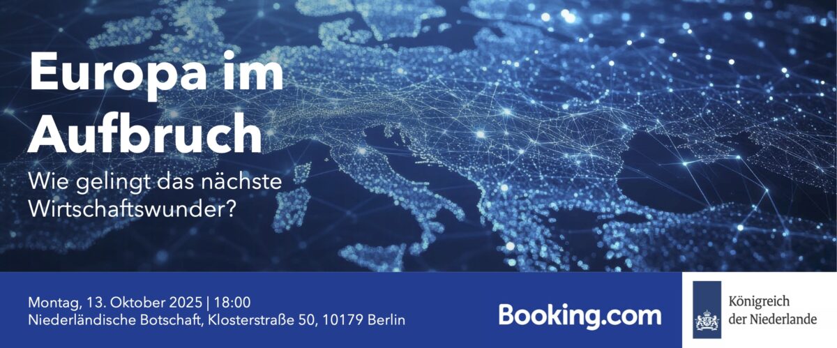 Diese und viele weitere Fragen werde ich am 13.10.2025 bei der Podiumsdiskussion „Europa im Aufbruch – Wie gelingt das nächste Wirtschaftswunder?“ in der Botschaft des Königreichs der Niederlande diskutieren.